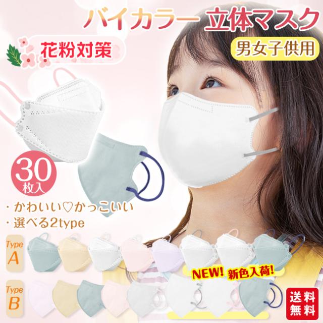 【花粉対策】新色バイカラー 子供 マスク 30枚 立体マスク 不織布マスク 息がしやすい バイカラー キッズ 子ども くすみカラー 3D立体