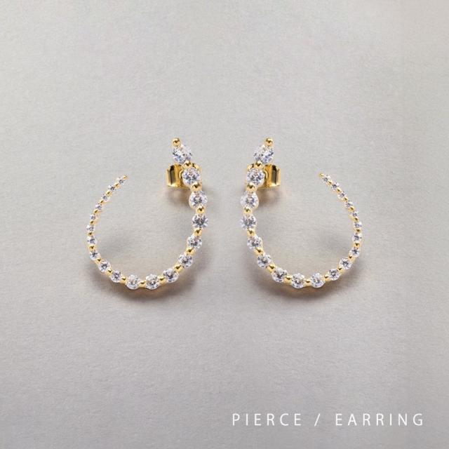 大人上品に煌めく華奢ドロップラインピアス/イヤリング。先に向かって小さくなるジルコニアが繊細な輝きをつくり出す洗練デザイン。大きめだけど華奢なビジューラインでお顔周りを大人っぽく仕上げてくれます。