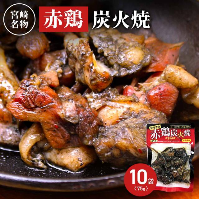 宮崎名物 国産 赤鶏 炭火焼 75g 10個入 やきとり 肉惣菜 お取り寄せ