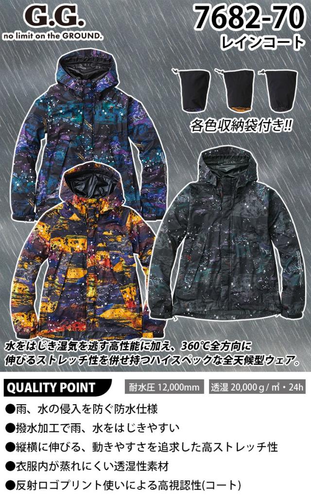SOWA 7682-70 レインコート 合羽 ストレッチ 防水 撥水 野帳ポケット 反射 男女兼用 企業 法人 工場 外作業 ワークユニフォーム 土木 工事 現場 S~4L メンズ ユニセックス 作業服 作業着
