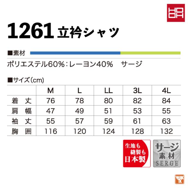1261 村上被服 立衿シャツ 滑らかなサージ素材の立衿シャツ!豊富なカラーリングも魅力。