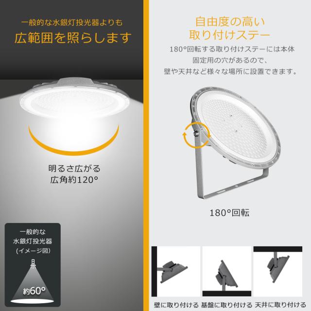 【照射角度は120°の超広角】