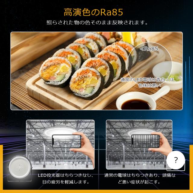 - LED投光器は優れた明るさを持ち、強い照明を提供できるため、スポーツ場や工場照明など、さまざまな場面での使用に適しています。