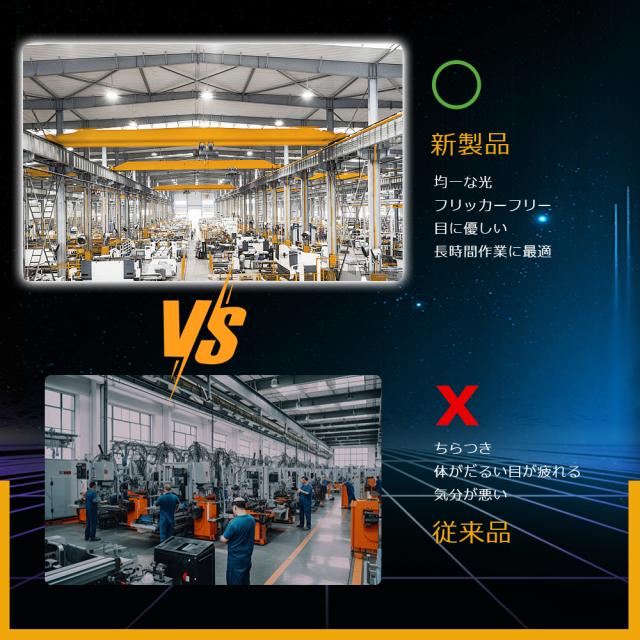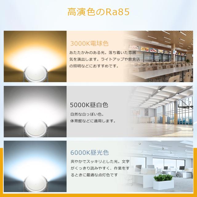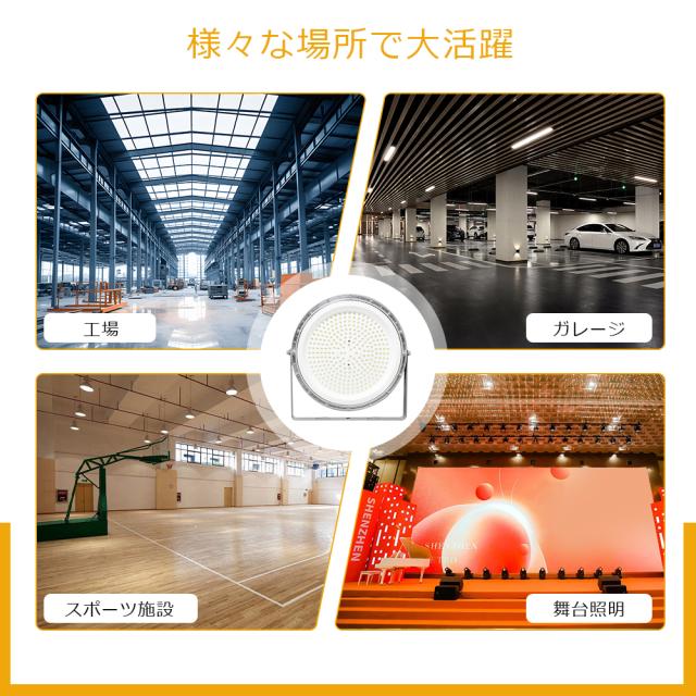 - 店舗、展示会や博物館、倉庫や工場、ジムやスポーツ施設、駐車場、イベントスペース。宴会、結婚式、パーティーなどのイベント会場を照らし、雰囲気や照明効果を演出します。高い明るさと広範な照明能力により、均一な光を提供し、さまざまな照明ニーズに対応します。