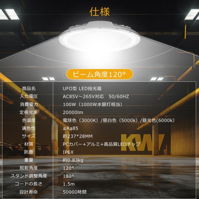 LED投光器 100W 20000lm 1000W水銀灯代替 昼白色5000K LED高天井照明 投光器 スタンド付き LED作業灯 ワークライト LED サーチライト LED 最強 高天井用LED照明 ガレージライト ダウンライト LED ワークライト 作業用ライト 体育館 展覧会 駐車場 工場 倉庫 PSE認証済み