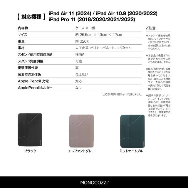 iPad Air 11インチ iPad Pro 11 ケース 手帳型 4WAY スタンド付 耐衝撃 カバー 動画視聴 タイピング 目線 高い スタンド [ iPadAir 11 M4 M3 iPad Air 10.9インチ iPadPro 11 他 対応 ] MONOCOZZI LUCID REFINED RAISE
