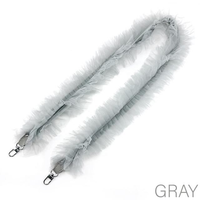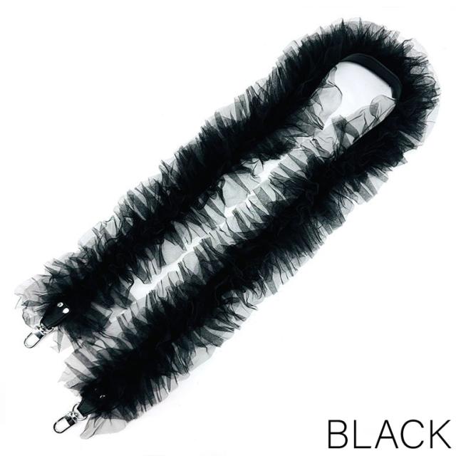 【チュールフリル スマホショルダー】スマホストラップ 斜め掛け クリアストラップホルダー付 レディース 可愛い 落下防止 長さ110cm 調整不可 ピンク ブラック グレー ホワイト iPhone Android対応 スマホショルダーストラップ