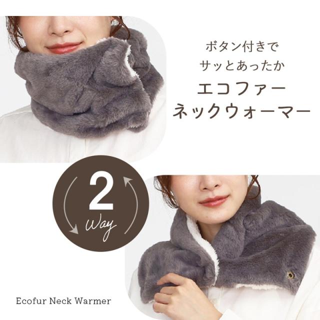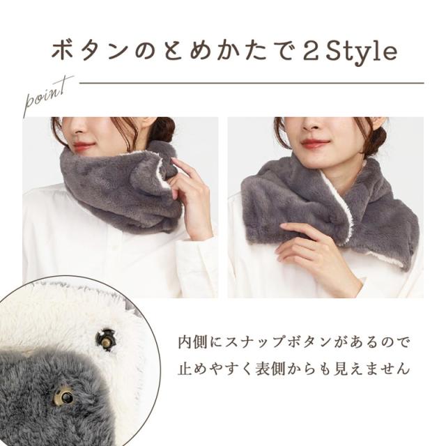 ネックウォーマー ボタン 付き エコファー スナップ 2way レディース スナップボタン ボア 襟巻き 肩当 あったか 暖かい ルームウェア 防寒 ふわふわ もこもこ 血流促進 温活 ぽか活 カントリー ナチュラル ニュアンス シープタッチ