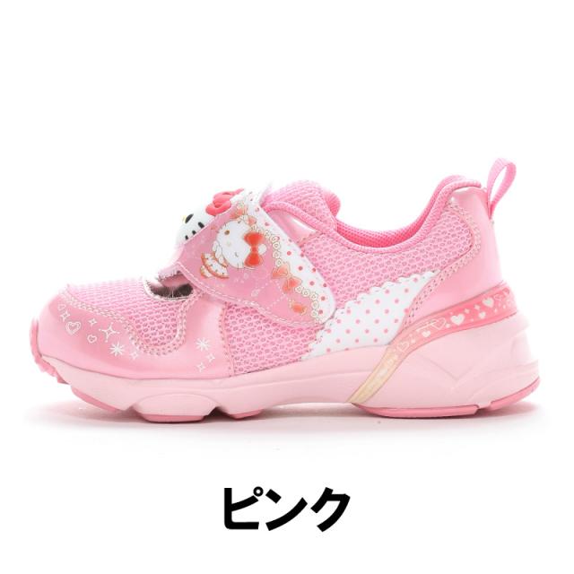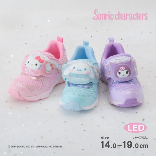 送料無料 サンリオ 子供靴 スニーカー SA C034 ピンク ミント パープル ハローキティ シナモロール クロミちゃん 甲バンドが光る! LED シューズ 女の子 幼稚園 保育園 小学生 夜間