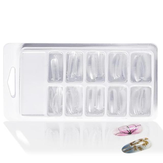 ネイルチップ 長さだし 透明フェイクネイルモールド ネイル延長 ネイル型チップ ネイルチップ フォームチップ 初心者用 ケースセット モールド ポリジェル専用 長さ出し 100pcs 透明ネイル