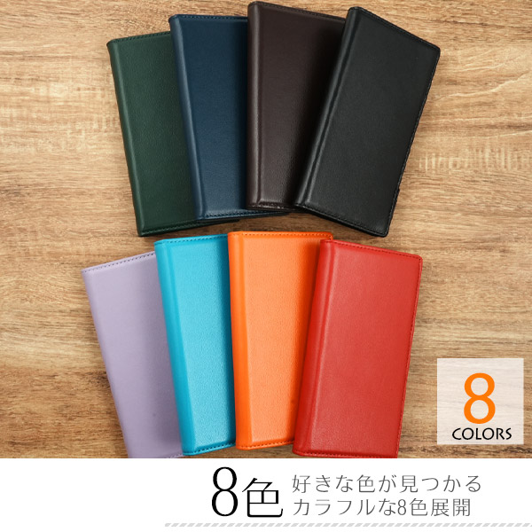 しっとりと吸い付くような手触りの良さと、きめの細かさ、柔らかさが抜群な 本物のシープスキンレザーを使用しています。 背面を折り返すとスタンドとして使用できるので、動画視聴に便利です。 横開きタイプなので、手帳のように使うことができます。 また、内側には収納しやすい縦型のカードポケットが付いています。 フラップがない、マグネット内蔵タイプなので開閉が簡単です。 内部ケースはハードケースなのでしっかりとスマートフォンを固定できます。 PCケース採用とフラップなし設計で厚みをおさえ、 厚み約17mmの薄型サイズを実現。ポケットにも楽々収納できます。 | ||||||||||||||
