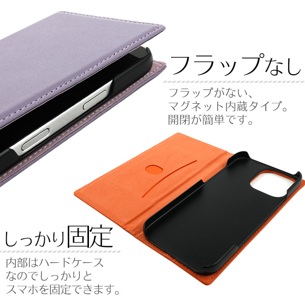 しっとりと吸い付くような手触りの良さと、きめの細かさ、柔らかさが抜群な 本物のシープスキンレザーを使用しています。 背面を折り返すとスタンドとして使用できるので、動画視聴に便利です。 横開きタイプなので、手帳のように使うことができます。 また、内側には収納しやすい縦型のカードポケットが付いています。 フラップがない、マグネット内蔵タイプなので開閉が簡単です。 内部ケースはハードケースなのでしっかりとスマートフォンを固定できます。 PCケース採用とフラップなし設計で厚みをおさえ、 厚み約17mmの薄型サイズを実現。ポケットにも楽々収納できます。 | ||||||||||||||