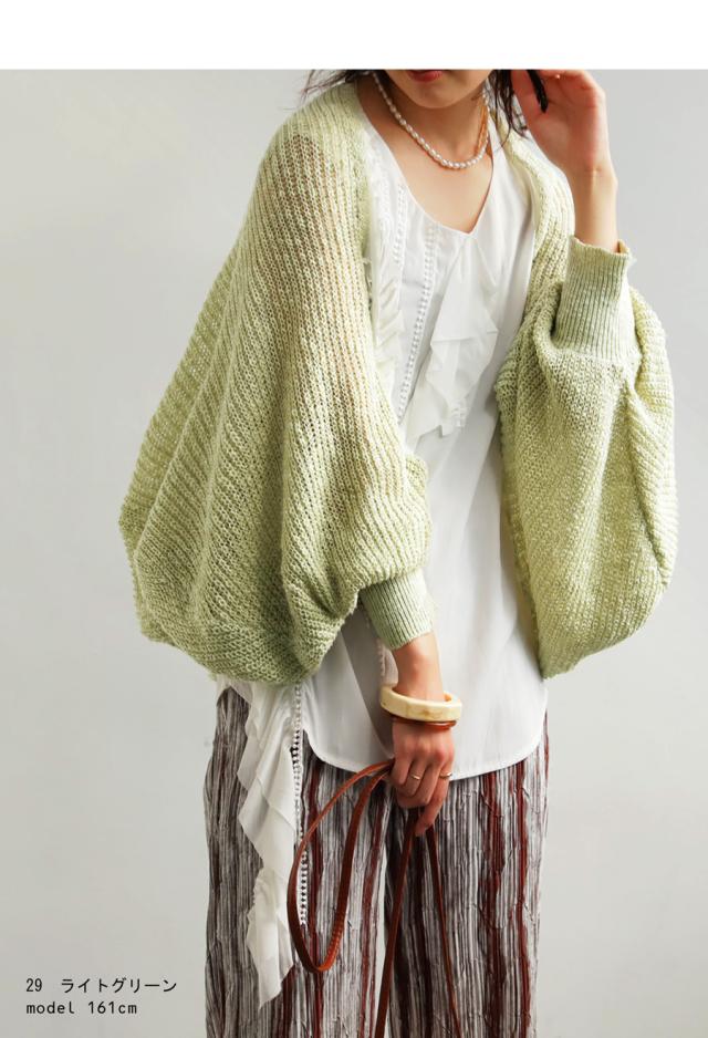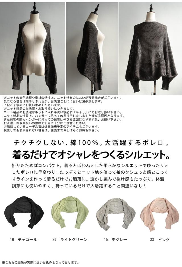 【検索ワード】ニットボレロ ボレロ レディース ニット 長袖 カーディガン 無地 ショート丈 綿100 綿 コットン 透かし編み ドルマンシルエット ドルマン リブ レイヤード 重ね着 薄手 ゆったり シンプル きれいめ 上品 高級感 ぽわん ふわふわ ふんわり ポコポコ 柔らか 暖かい あったか ニュアンス 体温調節 冷房対策 体型カバー 細見え 着痩せ 大きめ 大きいサイズ カーデ 杢グレー グレー チャコール ライトグリーン グリーン 緑 ピンク チクチクしない チクチクしないニット antiqua アンティカ 大人 おしゃれ 10代 20代 30代 40代 50代 60代 春 夏 秋 お洒落 カジュアル かわいい かっこいい あんてぃか