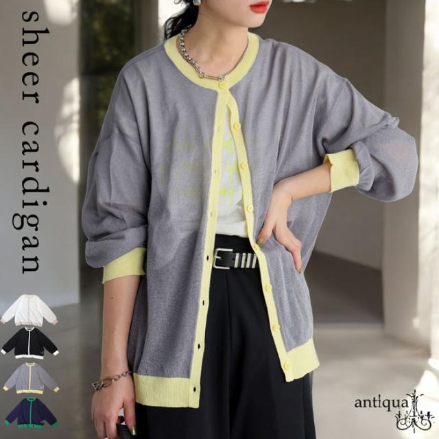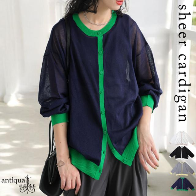 【検索ワード】配色シアーカーディガン カーディガン レディース トップス 長袖 シアー 配色 無地 丸首 ラウンドネック 透け 透け感 シアー素材 レイヤード 重ね着 配色 配色リブ オフィス オンオフ オフィスカジュアル オフィカジ 同色ボタン ボタン 清涼感 抜け感 羽織り 前開き シアーニット カーデ 薄手 シンプル シースルー レーヨン混 ドロップショルダー 涼し気 大きめ サイズ展開 Regular Plus ホワイト 白 ブラック 黒 グレー ネイビー 紺 antiqua アンティカ 大人 おしゃれ 10代 20代 30代 40代 50代 60代 春 夏 お洒落 カジュアル かわいい かっこいい あんてぃか
