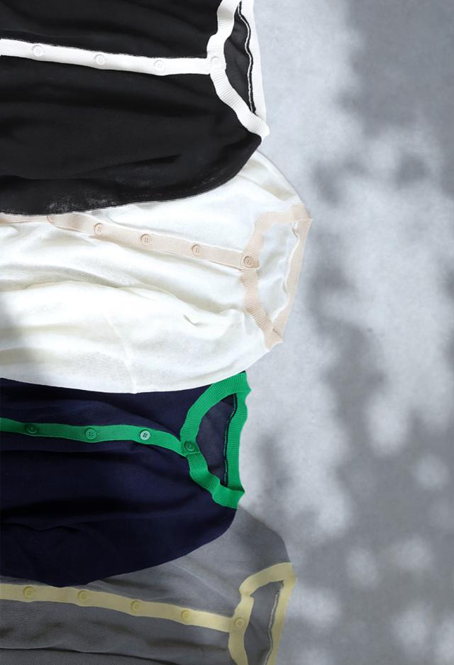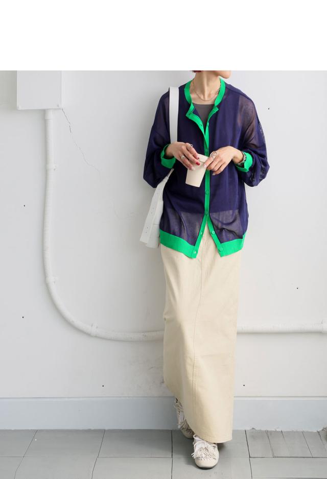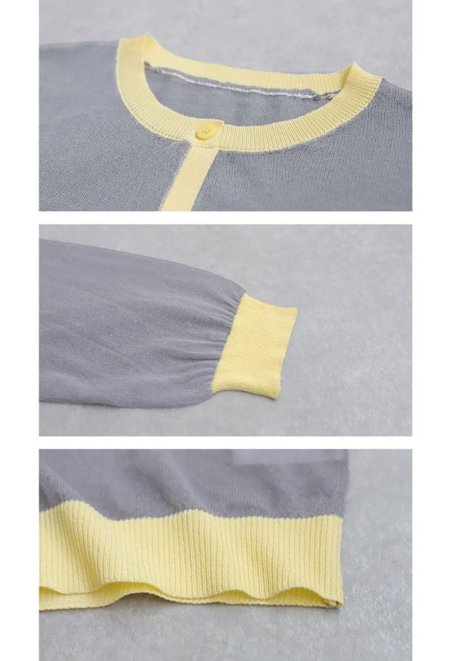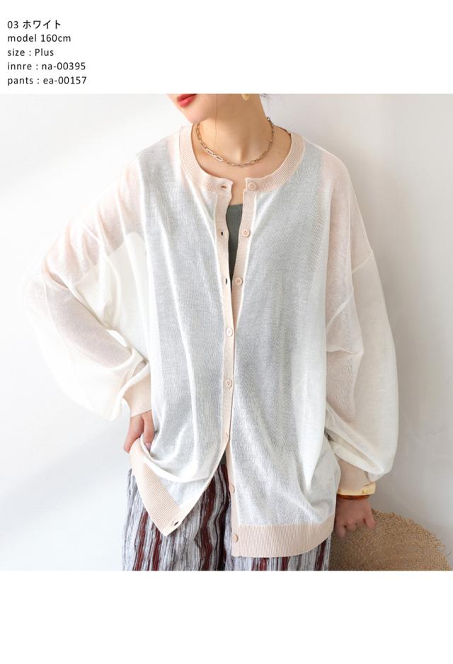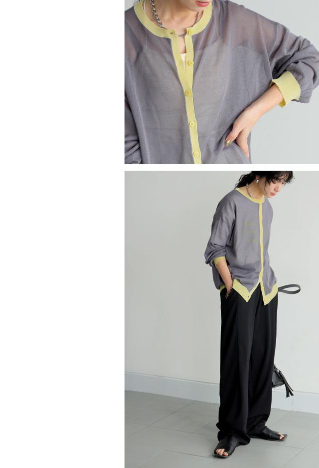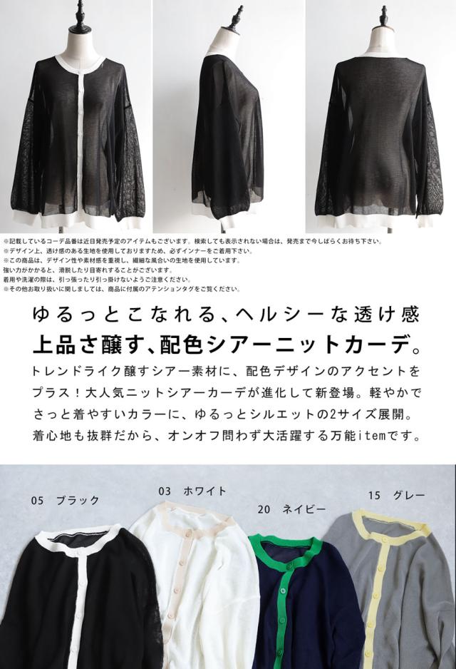 pn-00553 トップス 長袖 シアー 配色 無地 丸首 ラウンドネック 透け 透け感 シアー素材 レイヤード 重ね着 羽織り 前開き シアーニット カーデ 薄手 シンプル シースルー