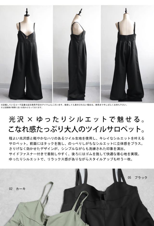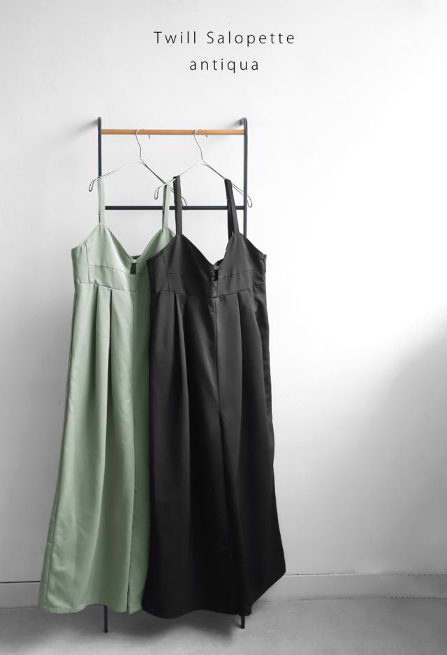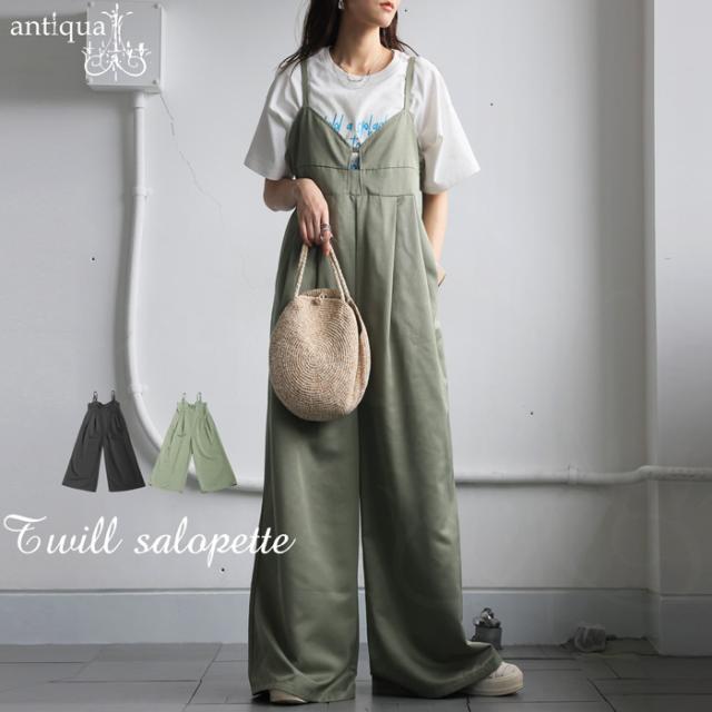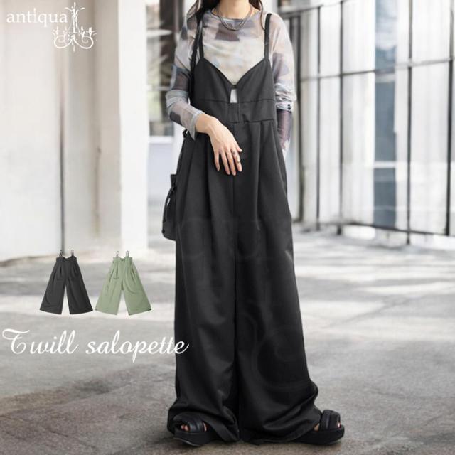 【検索ワード】ツイルサロペット サロペ レディース ボトムス ノースリーブ ロング 長ズボン 無地 ツイル ツイル生地 ワイドパンツ ワイドシルエット ワイド タック 後ろゴム Vネック サイドファスナー 肩紐調整可 ポケット付き ゆったり シンプル きれいめ 上品 モード 体型カバー 細見え 脚長効果 足長 光沢 着脱しやすい 大きめ 大きいサイズ ロングパンツ オーバーオール オールインワン ジャンプスーツ つなぎ サロペット カーキ ブラック 黒 antiqua アンティカ 大人 おしゃれ 10代 20代 30代 40代 50代 60代 春 夏 秋 冬 オールシーズン お洒落 カジュアル かわいい かっこいい あんてぃか