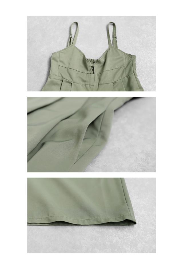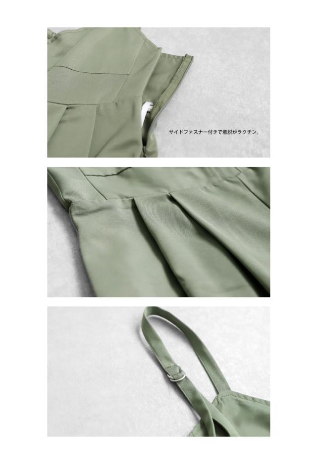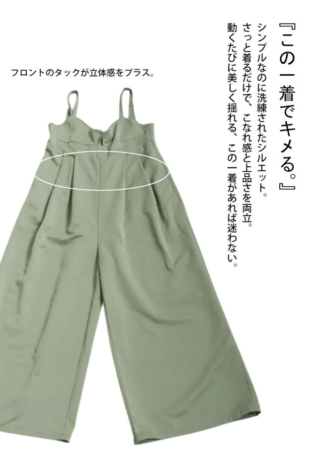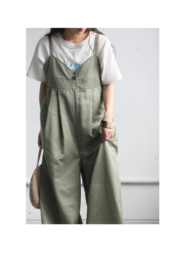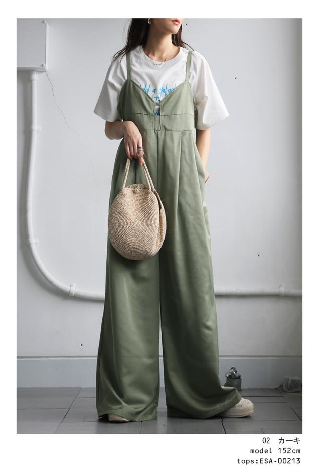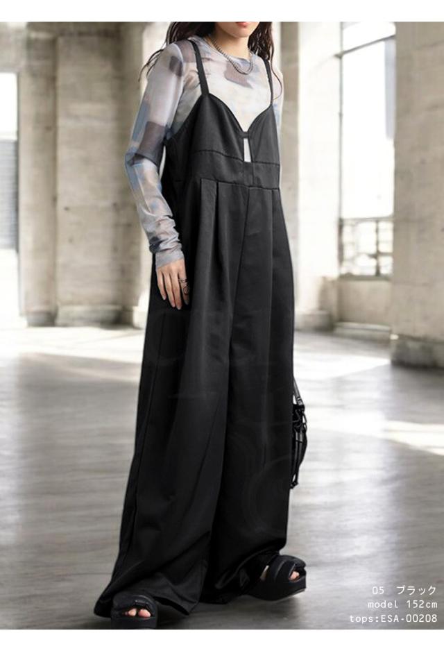 ep-00195 ノースリーブ ロング 長ズボン 無地 ツイル ツイル生地 ワイドパンツ ワイドシルエット ワイド タック 後ろゴム Vネック サイドファスナー 肩紐調整可 ポケット付き ゆったり