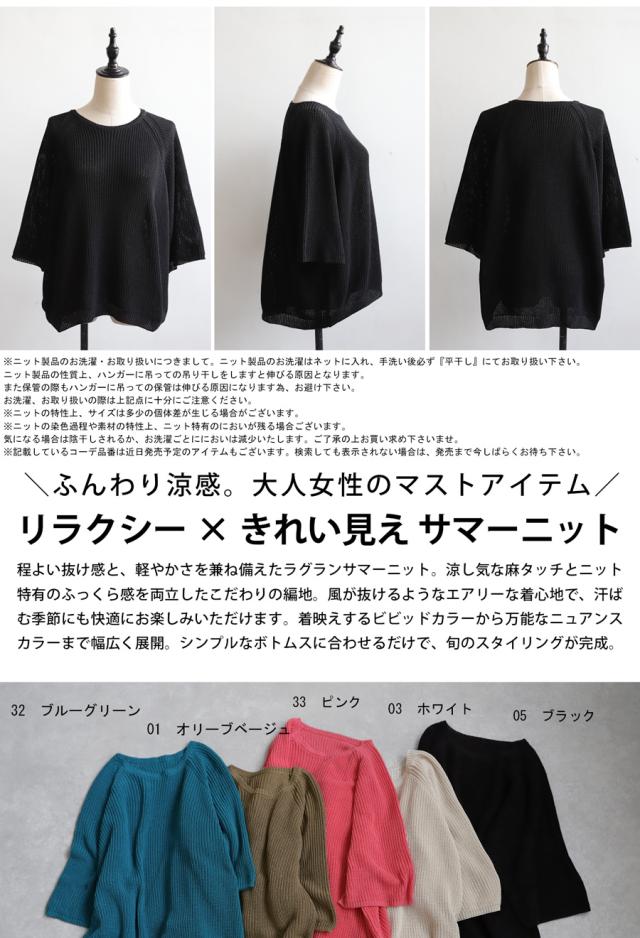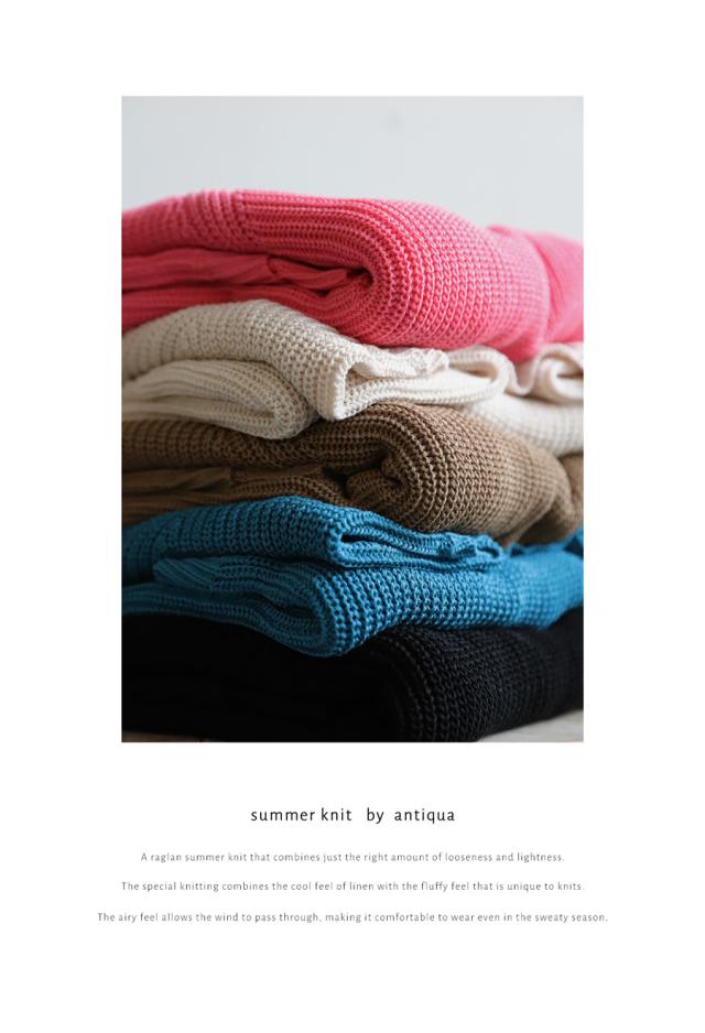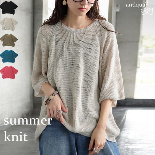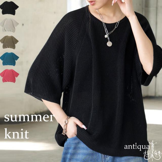 【検索ワード】サマーニットトップス ニット レディース トップス 五分袖 半袖 無地 丸首 クルーネック 麻タッチ シンプル ニットトップス プルオーバー ラグランスリーブ ベーシック 定番 着回し ゆったり セーター 裏編み 通気性 リネンタッチ 大きめ 大きいサイズ オリーブベージュ ホワイト 白 ブラック 黒 ブルーグリーン 青 緑 ピンク antiqua アンティカ 大人 おしゃれ 10代 20代 30代 40代 50代 60代 春 夏 お洒落 カジュアル かわいい かっこいい あんてぃか