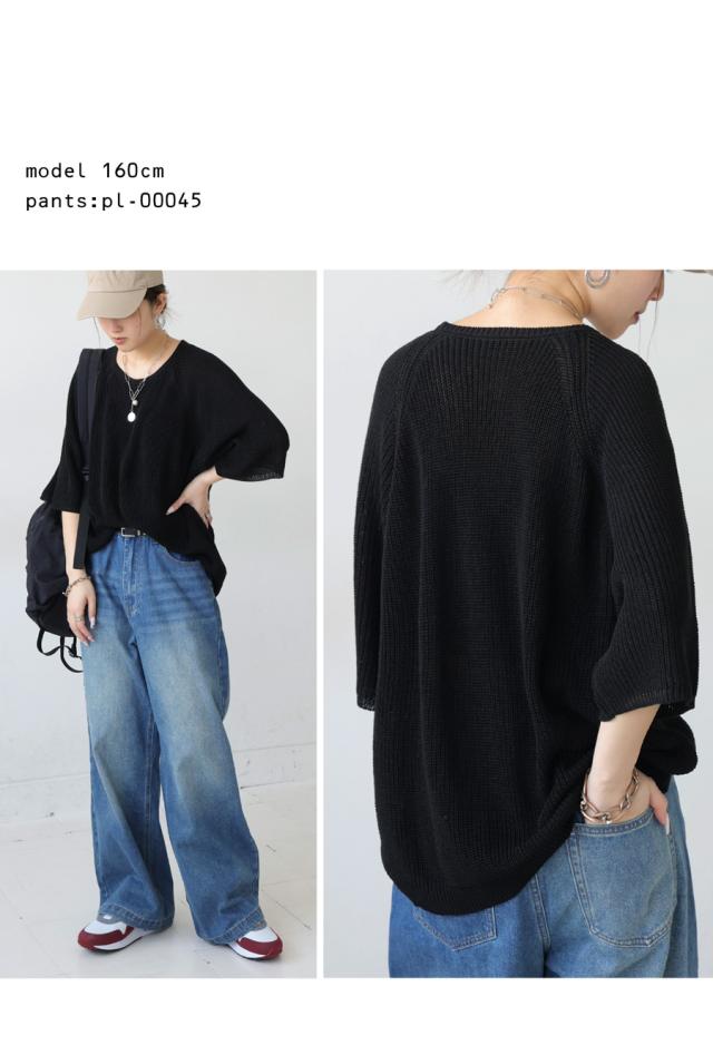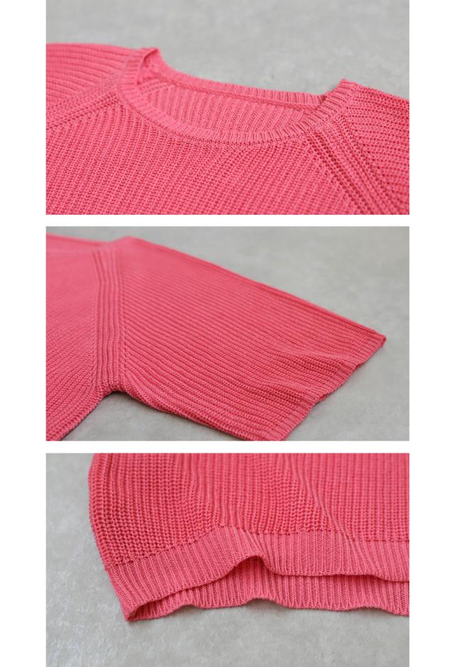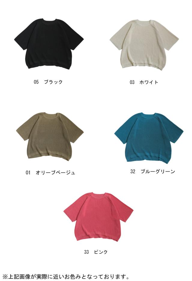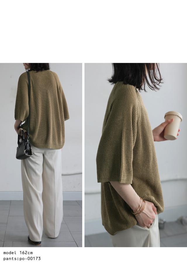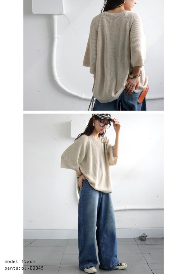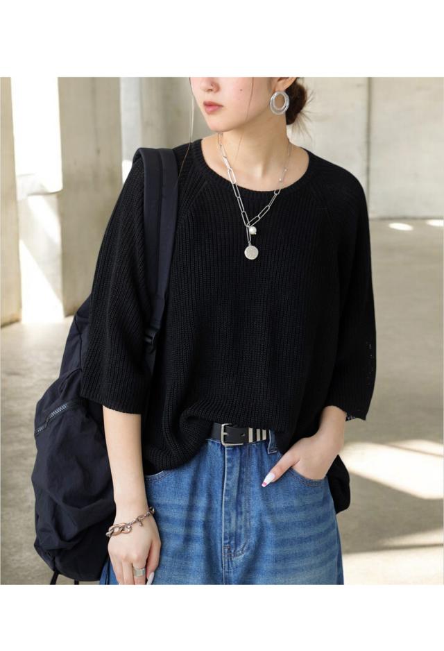 na-00481 半袖 無地 丸首 クルーネック 麻タッチ シンプル ニットトップス プルオーバー ラグランスリーブ ベーシック 定番 着回し ゆったり セーター 裏編み 通気性 リネンタッチ