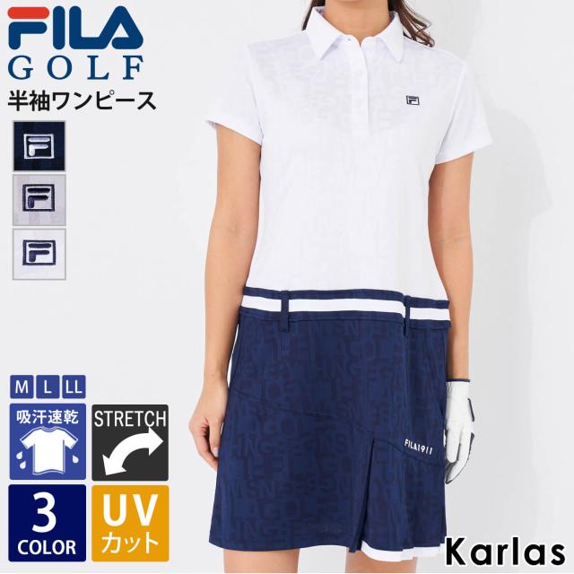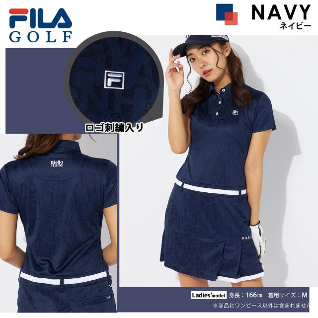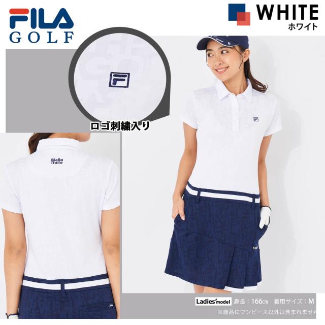 FILA フィラ ゴルフウェア レディース ブランド ロゴ ジャガード UVカット 吸汗速乾 リサイクル素材 モノグラム 半袖 ワンピース |