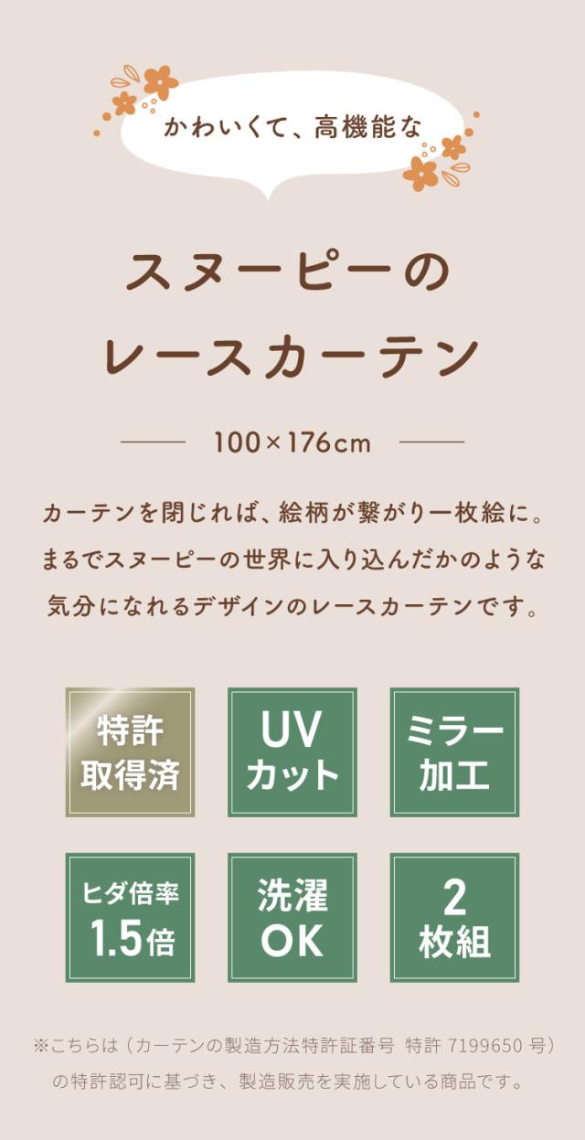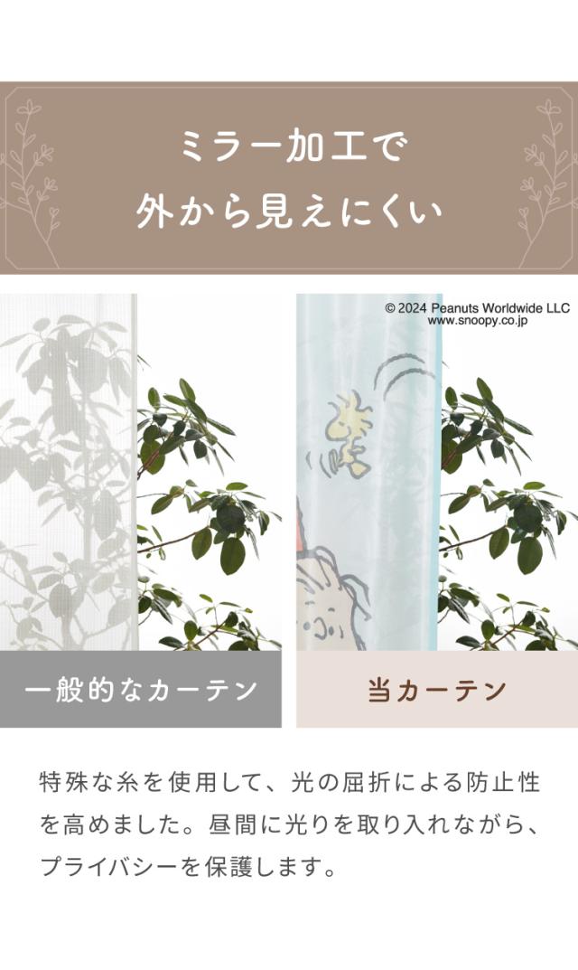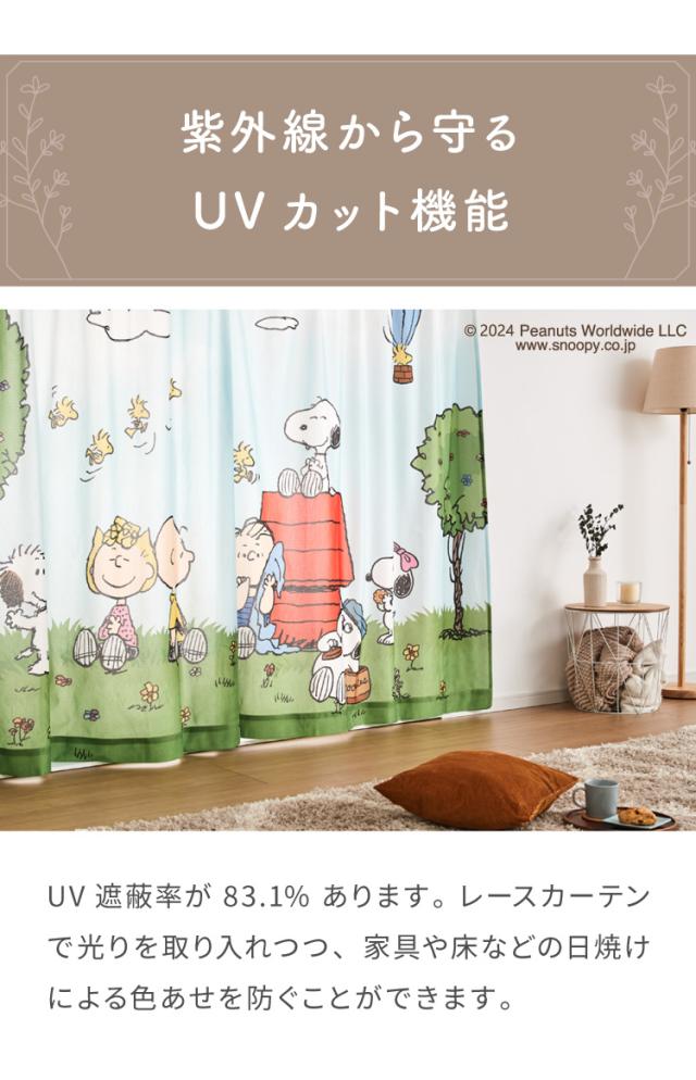 スヌーピー絵羽レースカーテン 2枚組 100×176cm UVカット 洗える 洗濯 プライバシー 目隠し カーテン 紫外線 おしゃれ かわいい PEANUTS スヌーピー チャーリーブラウン オラフ アンディ(代引不可
