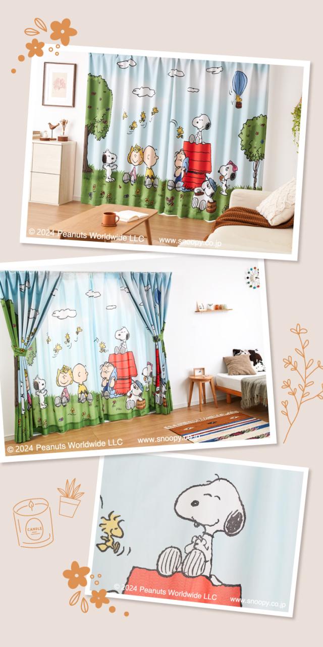 | スヌーピー 絵羽レースカーテン サイズバリエーション | ||||