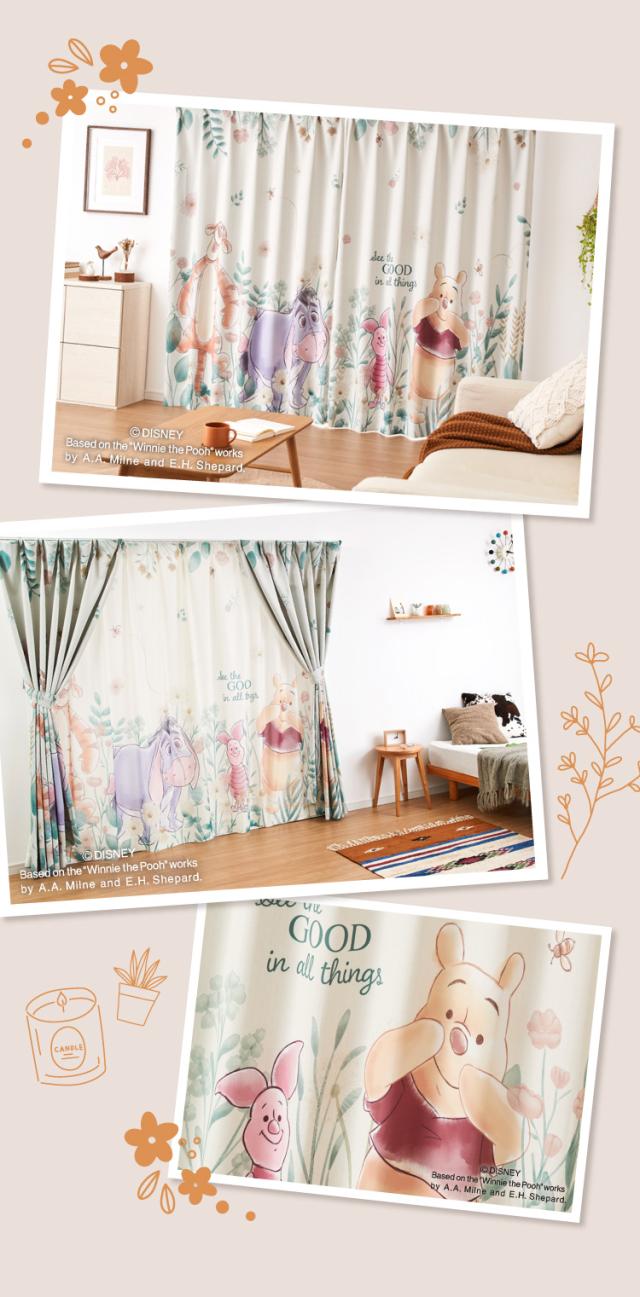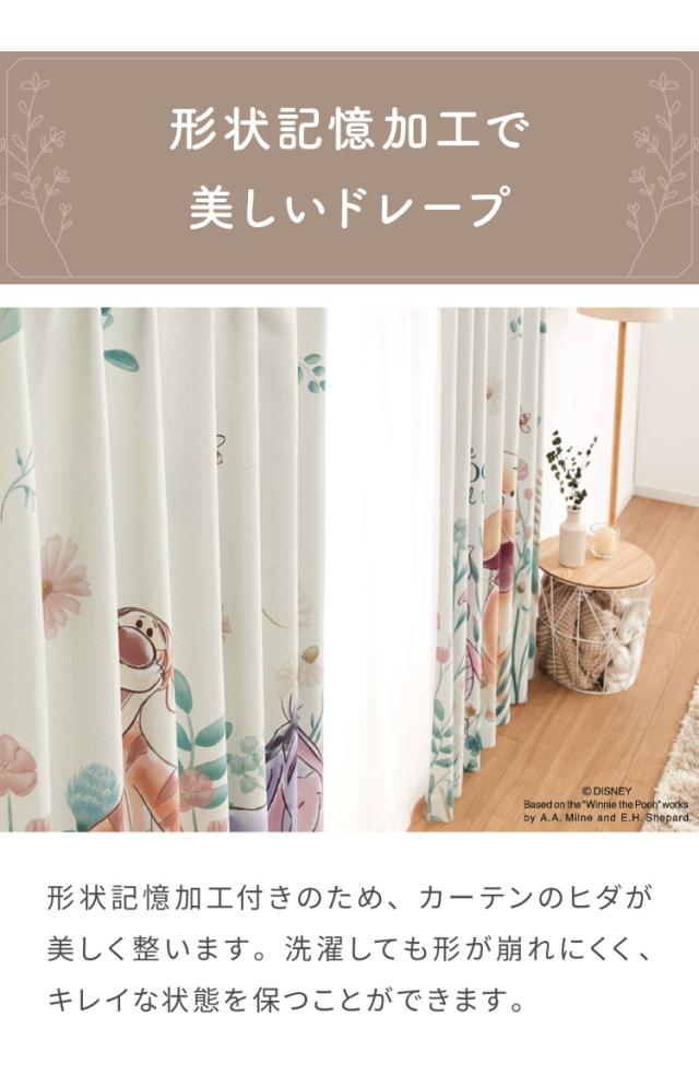 プーさん絵羽遮光カーテン 2枚組 100×135cm ドレープカーテン 遮光 洗える 洗濯 カーテン フック タッセル付き おしゃれ かわいい ディズニー くまのプーさん ピグレット ティガー イーヨー(代