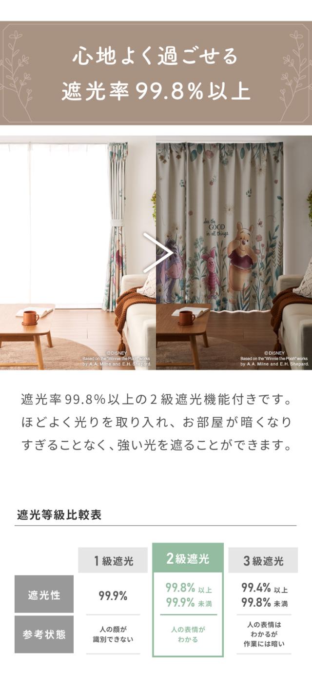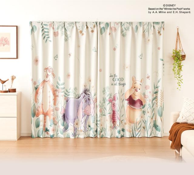 プーさん絵羽遮光カーテン 2枚組 100×200cm ドレープカーテン 遮光 洗える 洗濯 カーテン フック タッセル付き おしゃれ かわいい ディズニー くまのプーさん ピグレット ティガー イーヨー(代