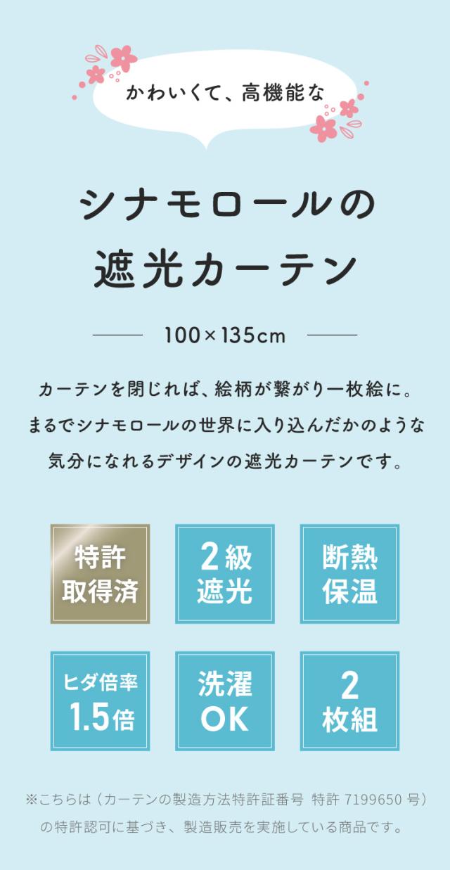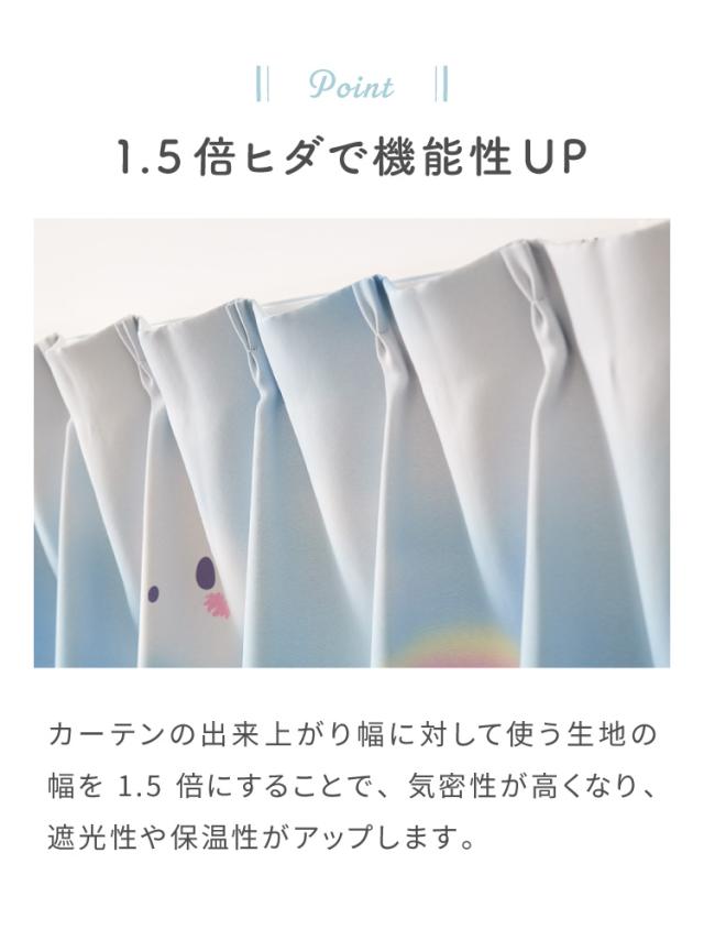 シナモン絵羽遮光カーテン 2枚組 100×135cm ドレープカーテン 遮光 洗える 洗濯 カーテン フック タッセル付き おしゃれ かわいい サンリオ シナモロール ポロン コルネ(代引不可)【送料無料】