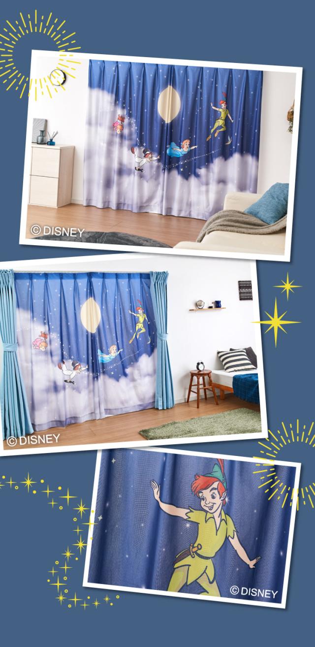 ピーターパン絵羽レースカーテン 2枚組 100×198cm UVカット 洗える 洗濯 プライバシー 目隠し フック付き カーテン 紫外線 おしゃれ かわいい ディズニー ピーターパン ティンカーベル ウェン