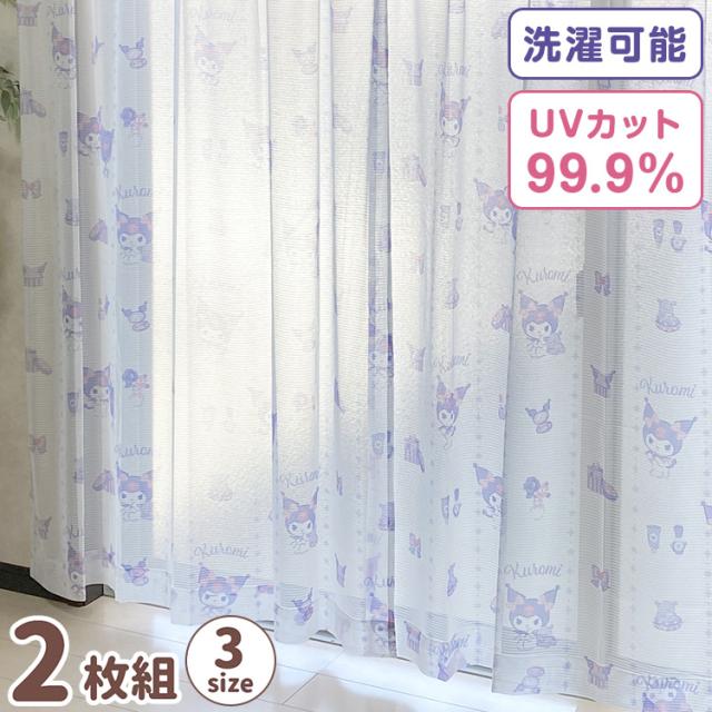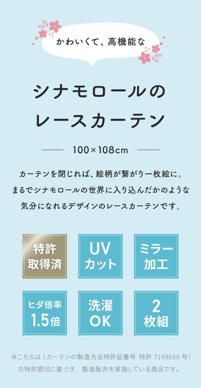 シナモン絵羽レースカーテン 2枚組 100×108cm UVカット 洗える 洗濯 プライバシー 目隠し フック付き カーテン 紫外線 おしゃれ かわいい サンリオ シナモロール ポロン コルネ(代引不可)【送料
