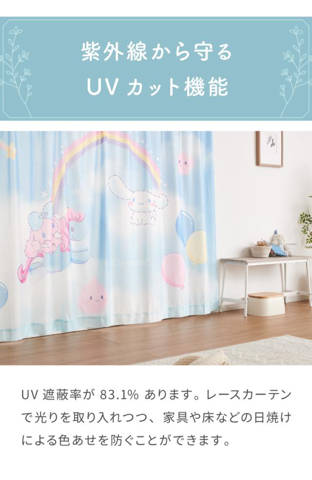 シナモン絵羽レースカーテン 2枚組 100×198cm UVカット 洗える 洗濯 プライバシー 目隠し フック付き カーテン 紫外線 おしゃれ かわいい サンリオ シナモロール ポロン コルネ(代引不可)【送料