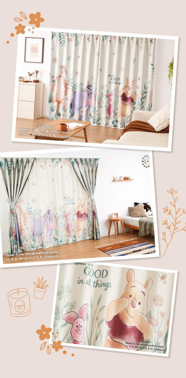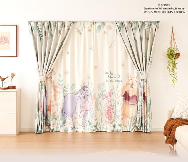 プーさんの2級遮光カーテンとレースカーテンの4枚セットです。