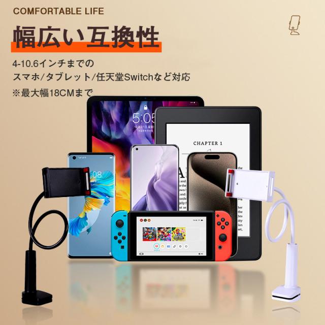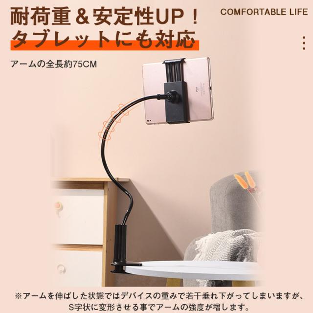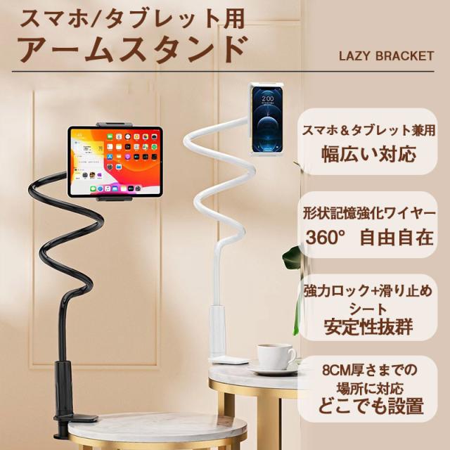 スマホスタンド スマホホルダー 卓上 フレキシブル 寝ながら アーム 携帯スタンド 携帯ホルダー キッチン 料理 撮影 動画撮影 写真撮影 音楽再生 デスク リビング 寝室 机 縦横 在宅 テレワーク 配信 曲がる 角度調整 スマホ