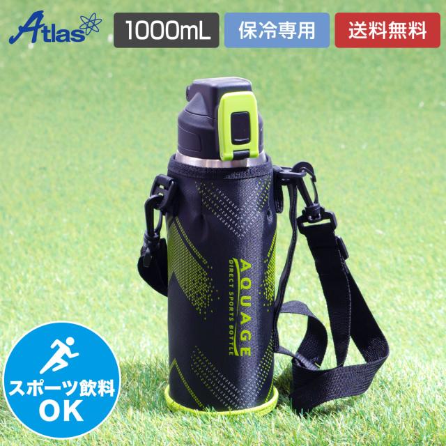 アトラス 水筒 1000ml 小学生 スポーツ飲料OK カバー付き 紐付き 直飲み 子ども 保冷専用 ステンレス 真空断熱 軽量 ワンタッチ 洗いやすい AQUAGE アクアージュ ADBT-1002S