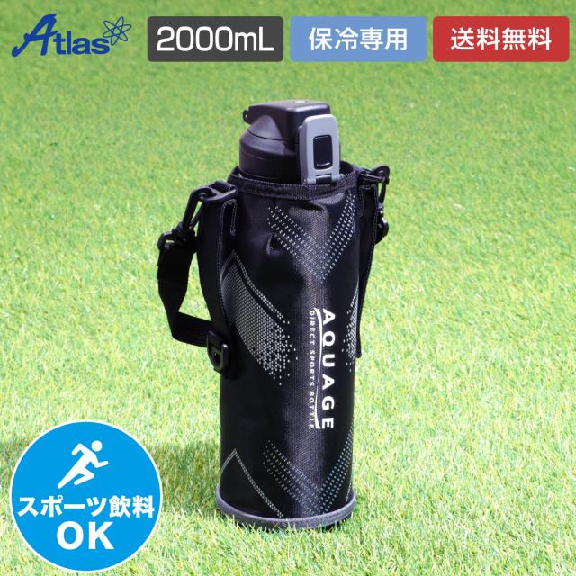 アトラス 水筒 2000ml 小学生 直飲み カバー付き 紐付き 直飲み 子ども 保冷専用 ステンレス 真空断熱 軽量 スポーツ飲料OK ワンタッチ 洗いやすい AQUAGE アクアージュ ADBT-2002S