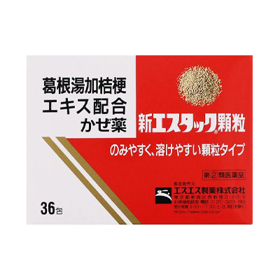 ●新エスタック顆粒は、かぜの諸症状に有効な洋薬成分と、古くから「かぜ」に用いられてきた葛根湯に桔梗を加えた「葛根湯加桔梗(かっこんとうかききょう)エキス」を配合したかぜ薬で、さむけ(悪寒)、頭痛、くしゃみ、鼻水などの症状によく効きます。