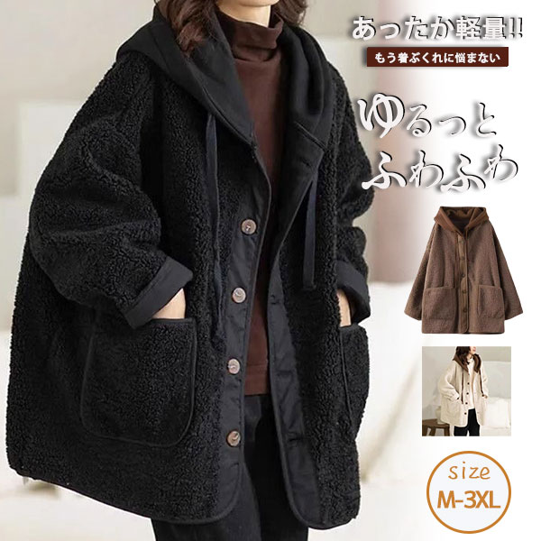 ボアアウター ブルゾンジャケット レディース フード アウター 長袖 異素材 オーバーサイズ フード 暖か ゆったり 冬 クラシカルエルフ 羽織り