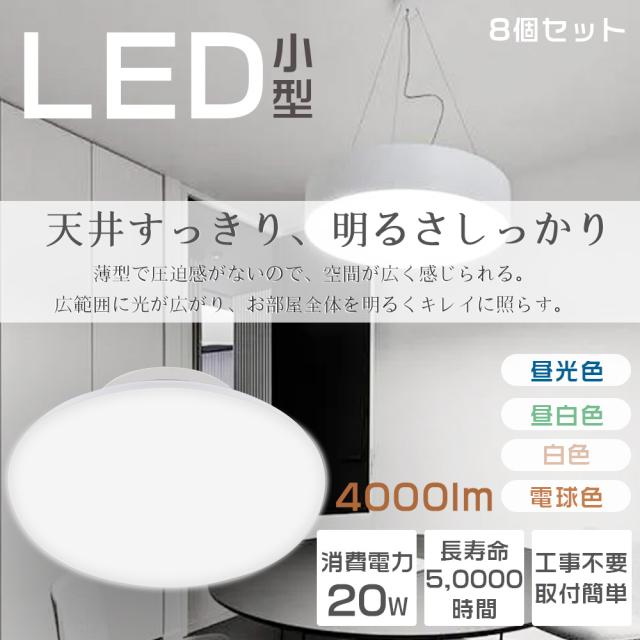 ≪8個入り≫天井照明 シーリングライト 和風 小型シーリングライト LEDシーリングライト 6畳 シーリングライト おしゃれ LEDライト 200W相当 LED照明器具 台所 20W 明るい 4000LM コンパクト 薄型 ダイニング リビング照明 玄関灯 廊下 階段 新居 子供部屋 トイレ PSE認証済