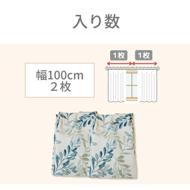 カーテン 遮光 風通 ナチュラルリーフ 遮光カーテン 幅100cm(2枚) 丈135 178 200cm おしゃれ 北欧