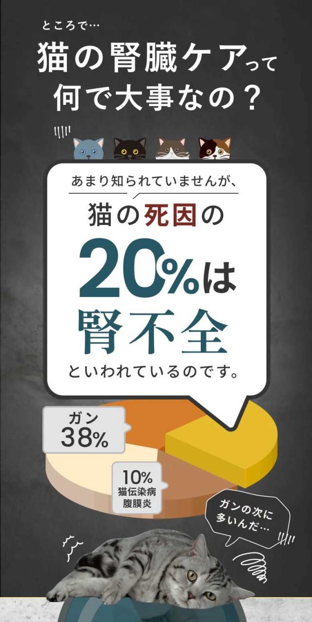 あまり知られていませんが、猫の死因の20%は腎不全と言われています。