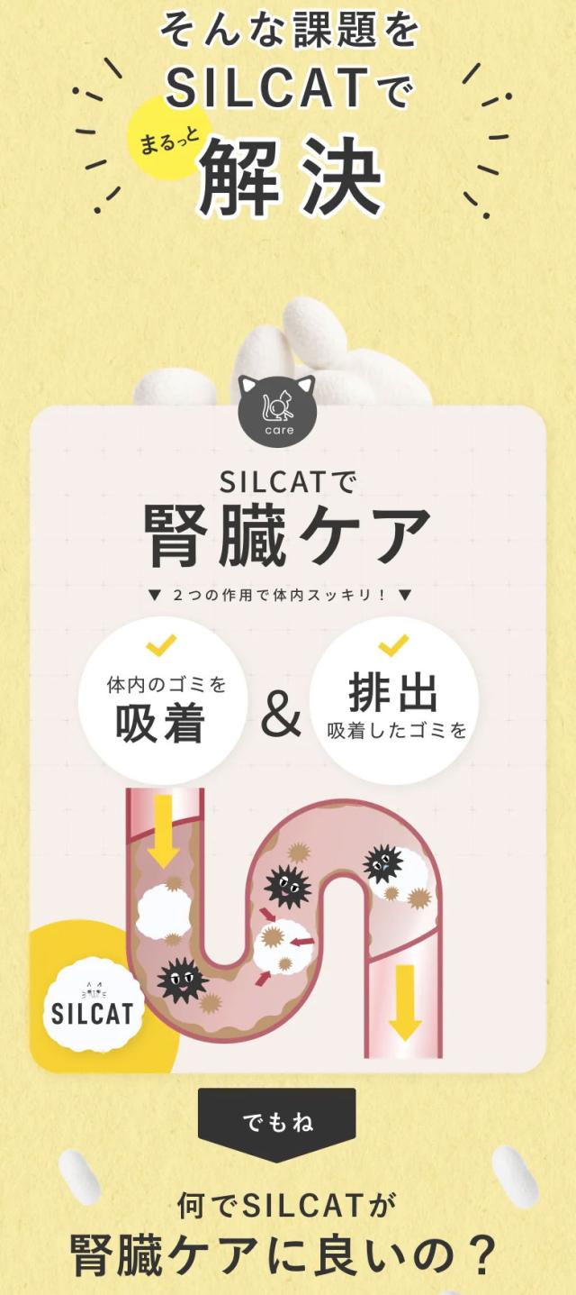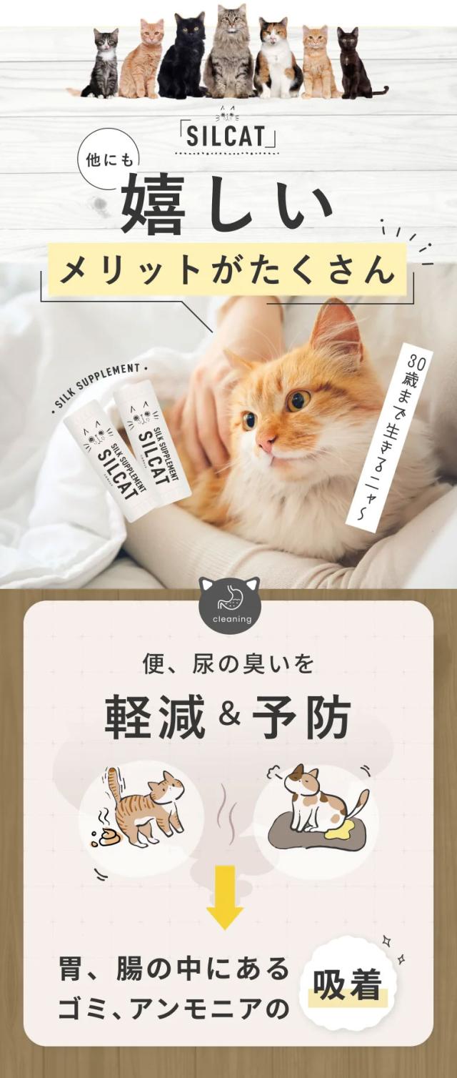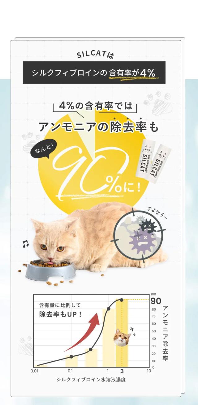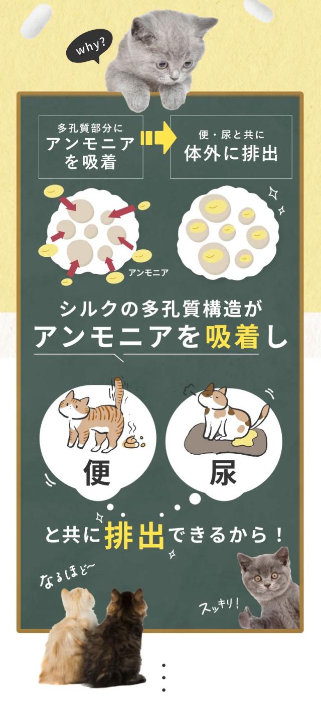 シルクの多孔質構造がアンモニアを吸着し便と尿と共に排出できるから!