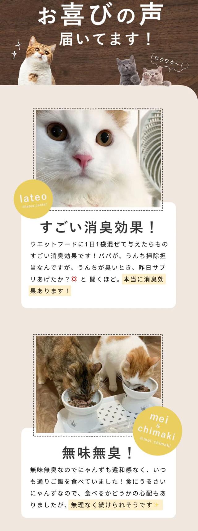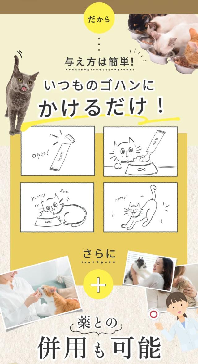 ・猫が食べる食事に朝か夜一緒に摂取してください。