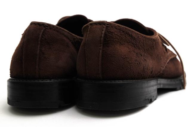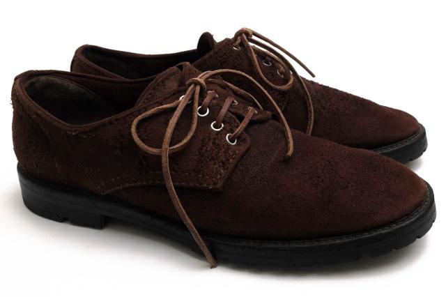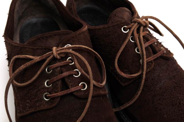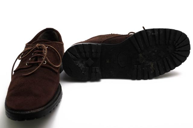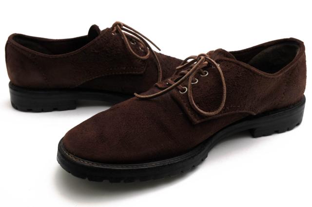 アッパー部分には、起毛されたスウェードを採用したダービーシューズ。ドレス感のあるフォルムながらも、ヴィンテージ調な風合いで、ドレススタイルからカジュアルスタイルまで幅広く合わせることができる逸品です。