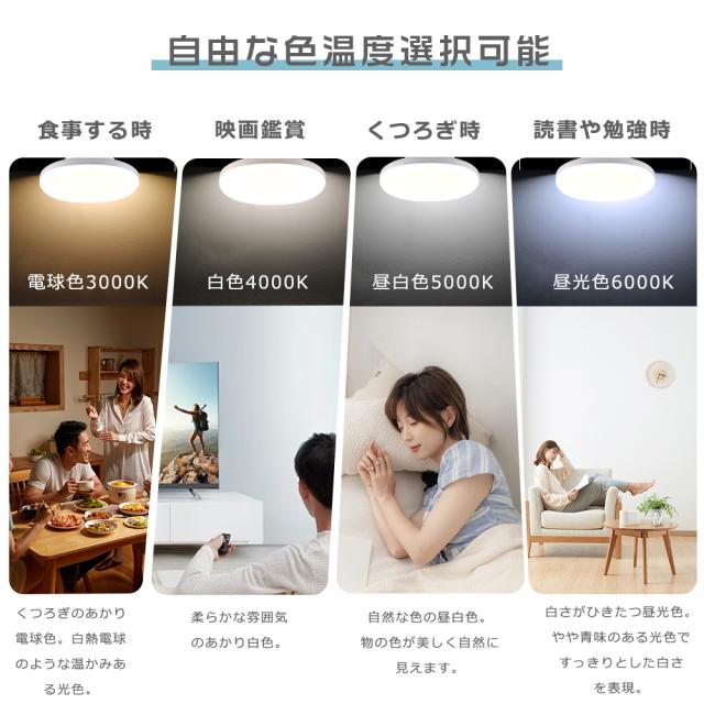 ★道具・工事が不要で取付作業ができます。女性でもマニュアルを参照しながら簡単に設置できます。明かさ十分、〜6畳までの部屋に適切です。リビングルーム、ダイニング、寝室、オフィス、トイレ、洋室、和室、部屋、居間など様々のところで活躍られます。