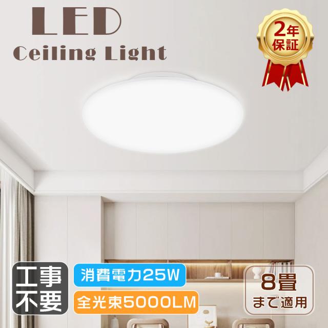 天井照明 シーリングライト 8畳 LEDシーリングライト 6畳 250W相当 シーリングライト おしゃれ LED照明器具 小型シーリングライト 工事不要 LEDライト 直付け照明 おしゃれ 薄型 軽量 明るい5000LM 引っ掛けシーリング ワンタッチ取り付け 色選択 廊下 玄関 2年保証