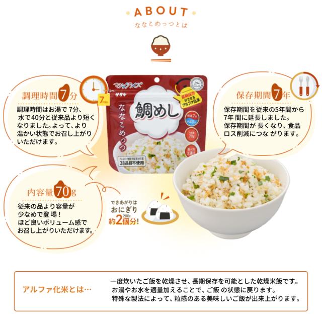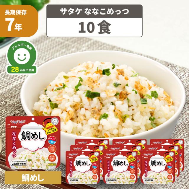 非常食 マジックライス ななこめっつ 鯛めし 10食 アレルギー対応 7年保存 防災グッズ 防災食 28品目不使用 ごはん サタケ