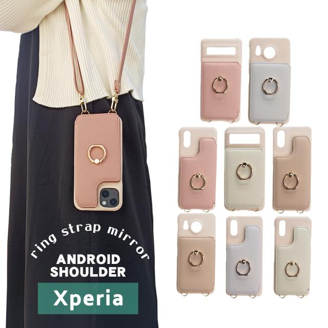 xperia10vii ケース ショルダー エクスペリア10vii マーク7 スマホショルダー ストラップ リング付きケース xperia10vi スマホカバー かわいい エクスペリア10vi マーク6 カード収納 背面ポケット 鏡付き プレゼント ギフト スマホケース メンズ レディース カジュアル