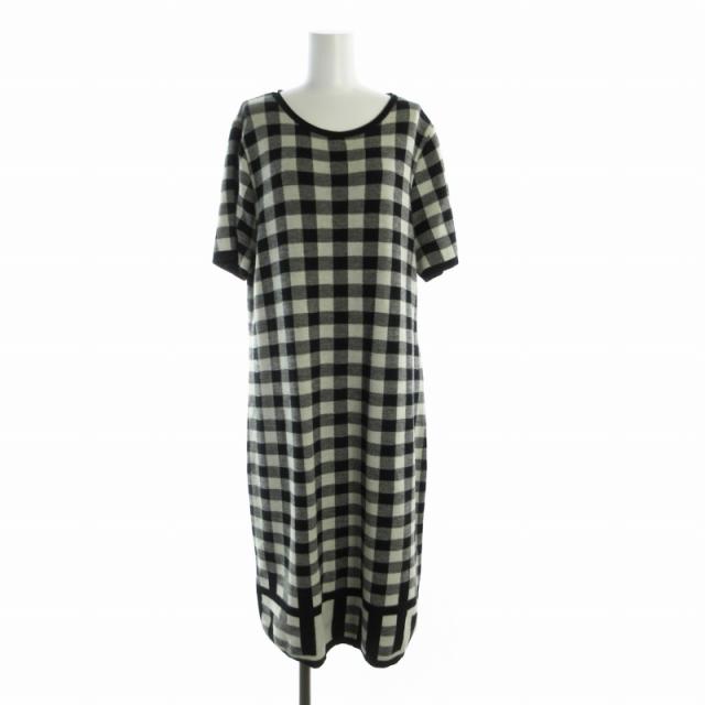 【中古】ヴォヤージュ BY MARINA RINALDI タイトワンピース ひざ丈 ニット チェック 半袖 M 白 黒