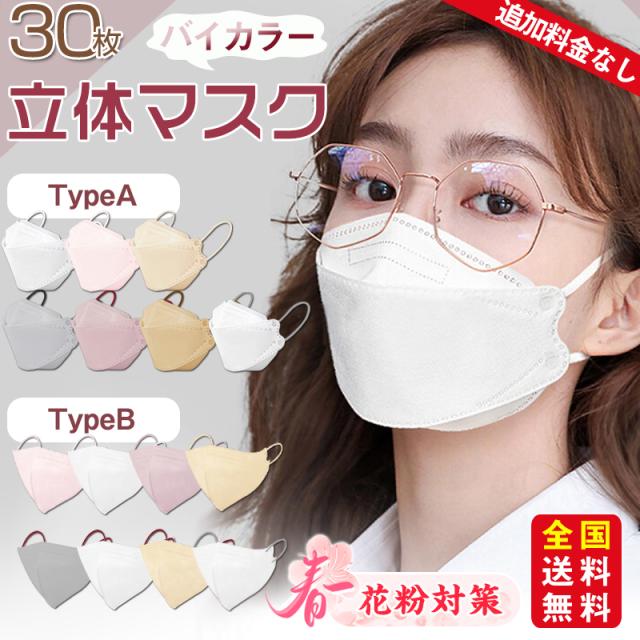 【小顔魅せマスク】高評価 新色 バイカラーマスク 小顔3Dマスク 立体マスク 30枚入 不織布マスク 息がしやすい くすみカラー 小顔 パステルカラー 小さめ 4層 口紅が付きにくい バイカラー 着用快適